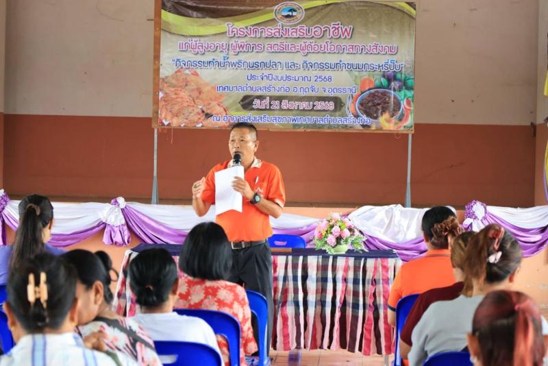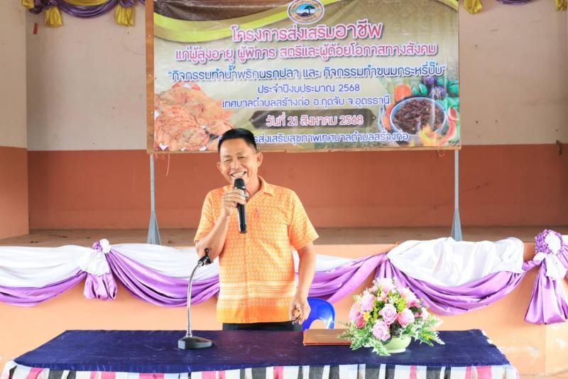 โครงการส่งเสริมอาชีพแก่ผู้สูงอายุ ผู้พิการ สตรีและผู้ด้อยโอกาส กิจกรรมทำน้ำพริกนรกปลา และกิจกรรมทำขนมกะหรี่ปั๊บ ประจำปีงบประมาณ พ.ศ.2568 ณ อาคารส่งเสริมสุขภาพเทศบาลตำบลสร้างก่อ