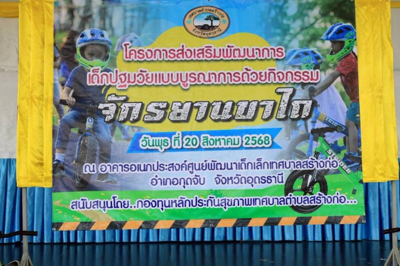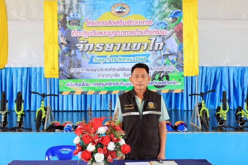 โครงการส่งเสริมพัฒนาการเด็กประถมวัยแบบบูรณาการด้วยกิจกรรม จักรยานขาไถ ณ อาคารอเนกประสงค์ศูนย์พัฒนาเด็กเล็กเทศบาลตำบลสร้างก่อ สนับสนุนโดยกองทุนหลักประกันสุขภาพเทศบาลตำบลสร้างก่อ